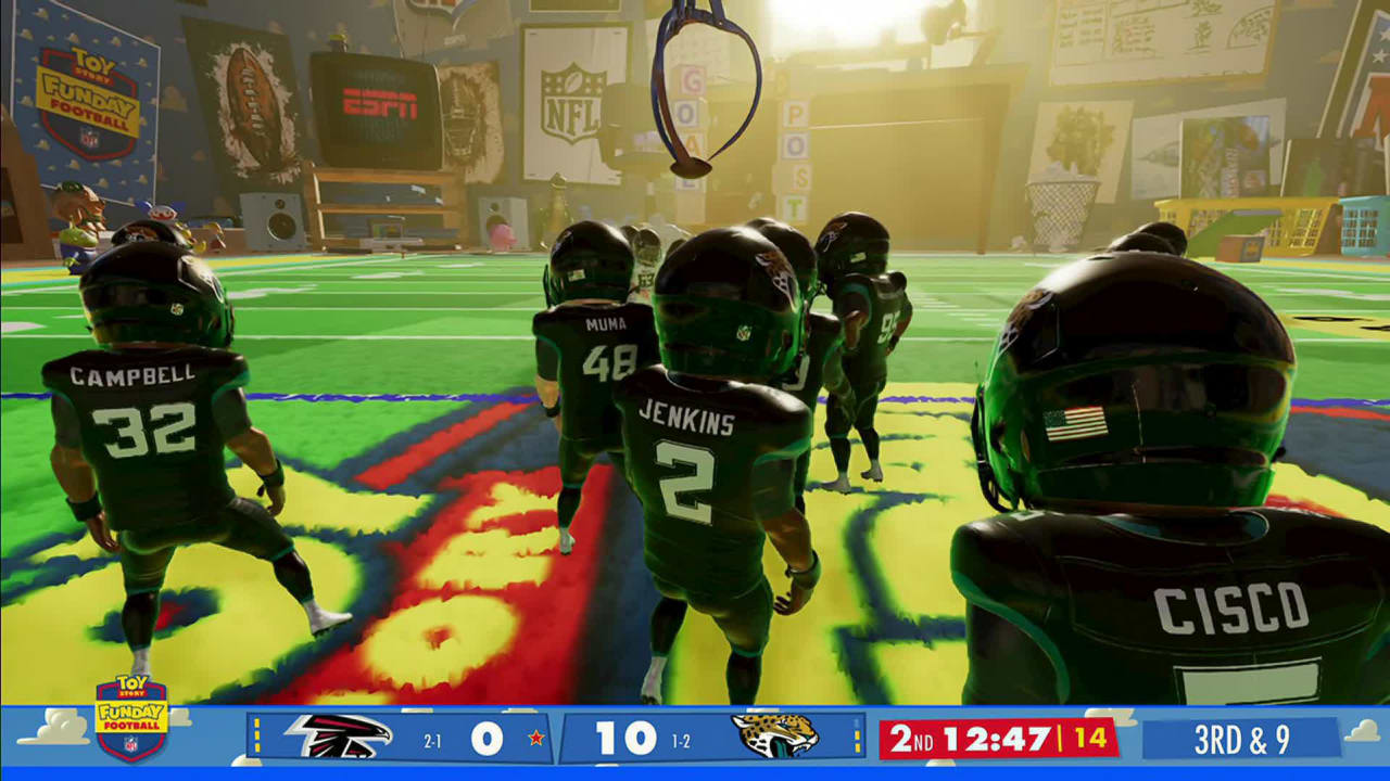 As a fan of football, Disney, Pixar, graphic design, and broadcasting, it was astounding to see the Jacksonville Jaguars and the Atlanta Falcons portrayed as animated characters, complete with helmets, pads, numbers, names, etc.